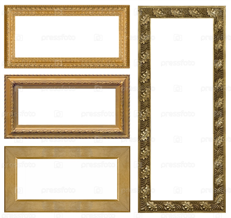 Набор золотых рамок для картин, зеркал или фотографий, изолированных на белом фоне