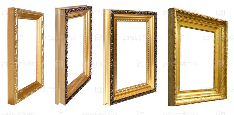 Золотая рама для картин, зеркал или фото в перспективе изолированного на белом фоне