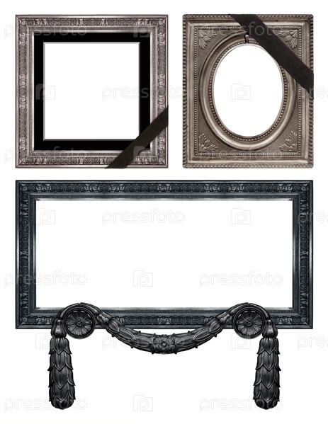 Набор рамок с черной траурной лентой для картин, зеркал или фотографий, изолированных на белом фоне