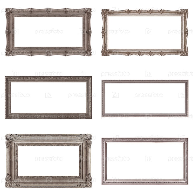 Набор панорамных серебряных рамок для картин, зеркал или фотографий, изолированных на белом фоне