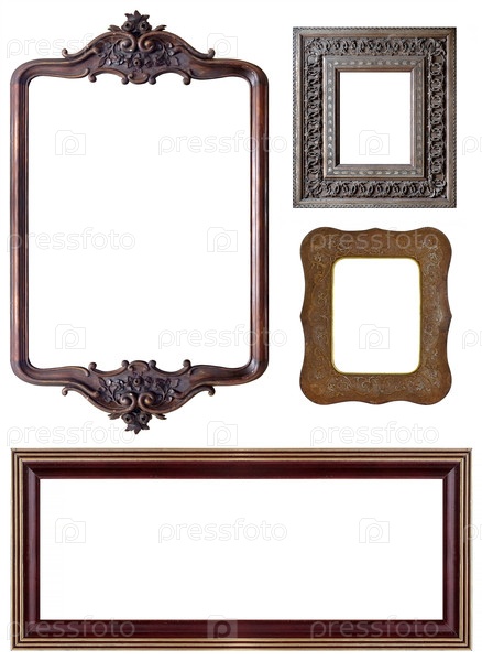 Набор деревянных рамок для картин, зеркал или фотографий изолированный на белом фоне