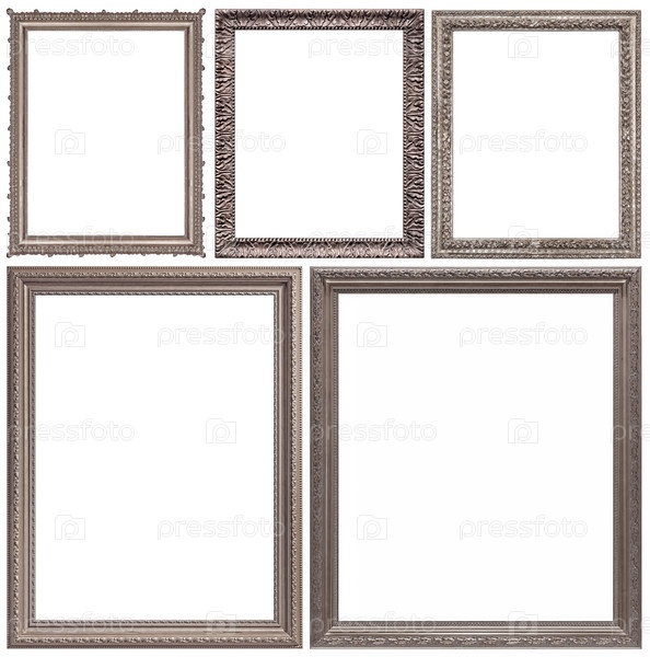 Набор серебряных рамок для картин, зеркал или фотографий изолированный на белом фоне