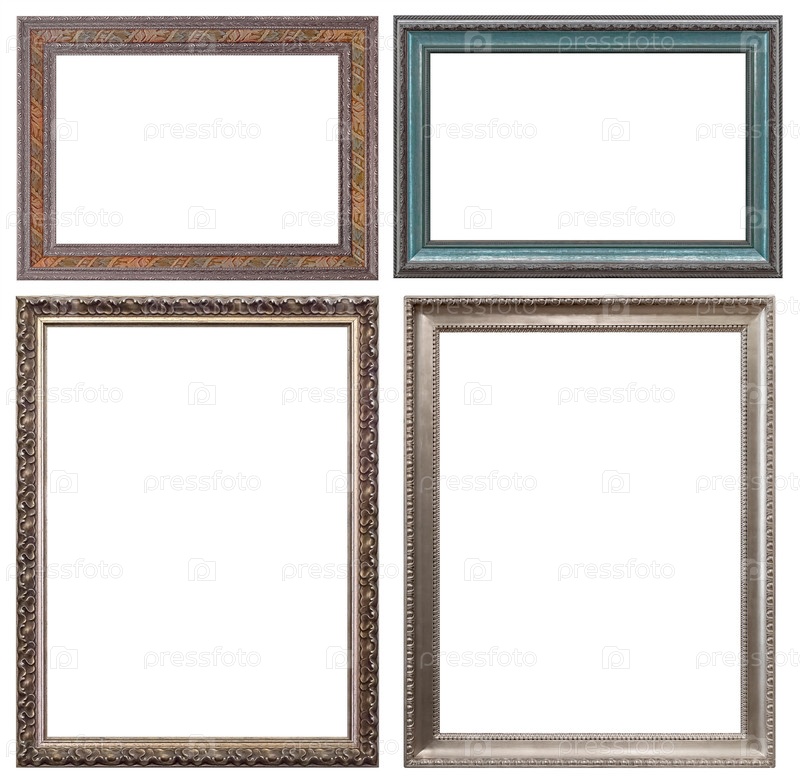 Набор серебряных рамок для картин, зеркал или фотографий изолированный на белом фоне