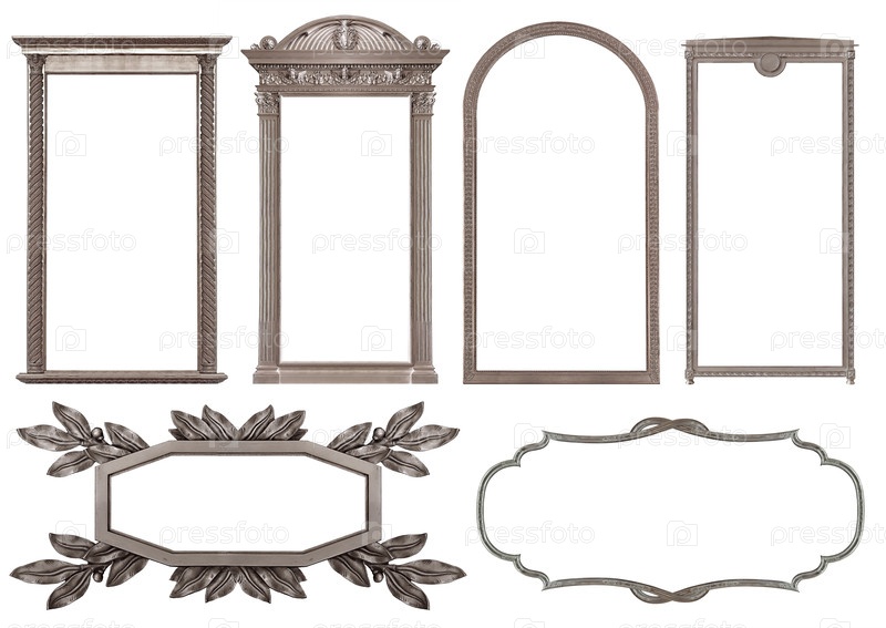 Набор серебряных рамок для картин, зеркал или фотографий изолированный на белом фоне