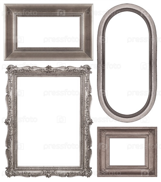Набор серебряных рамок для картин, зеркал или фотографий изолированный на белом фоне