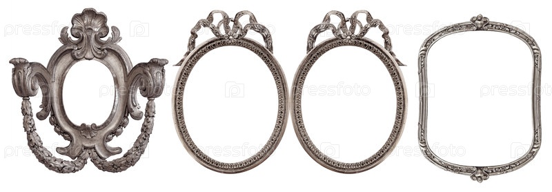 Набор серебряных рамок для картин, зеркал или фотографий изолированный на белом фоне