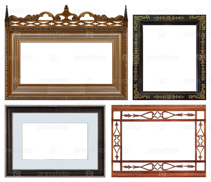 Набор деревянных рамок для картин, зеркал или фотографий изолированный на белом фоне