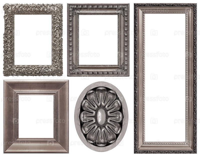 Набор серебряных рамок для картин, зеркал или фотографий изолированный на белом фоне
