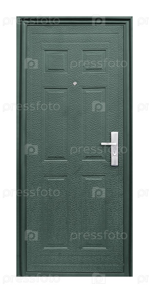Модель входной металлической двери, изолированной на белом фоне
