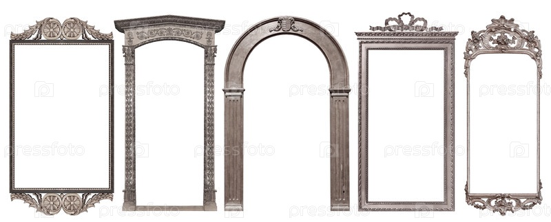 Набор панорамных серебряных рамок для картин, зеркал или фотографий, изолированных на белом фоне