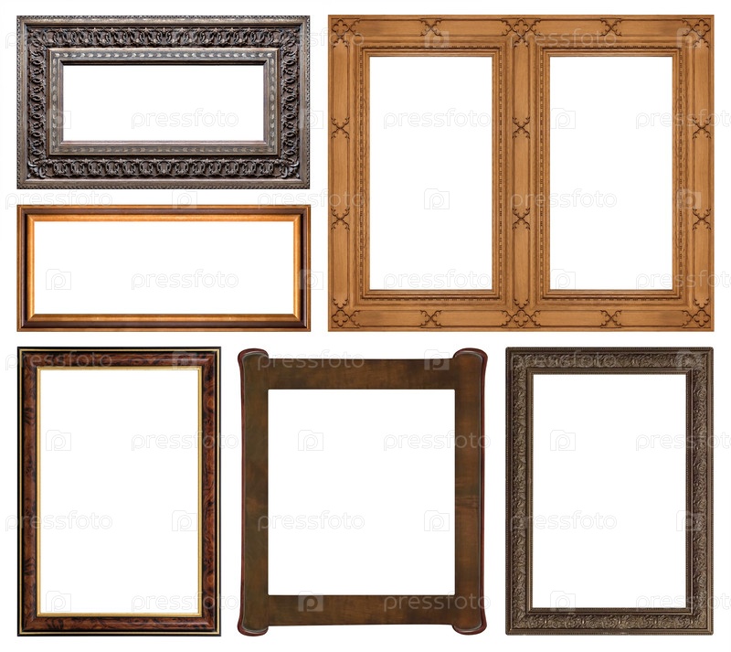 Набор деревянных рамок для картин, зеркал или фотографий изолированный на белом фоне