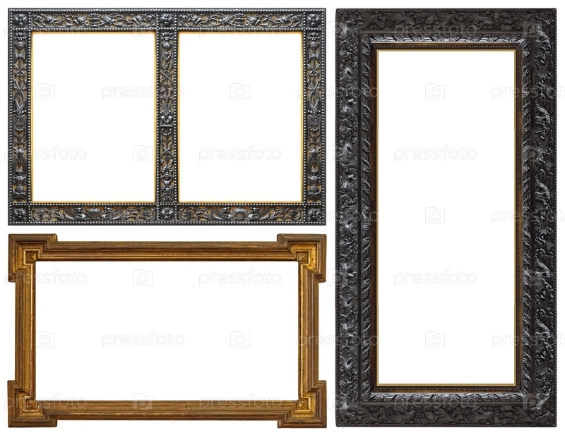 Набор деревянных рамок для картин, зеркал или фотографий изолированный на белом фоне