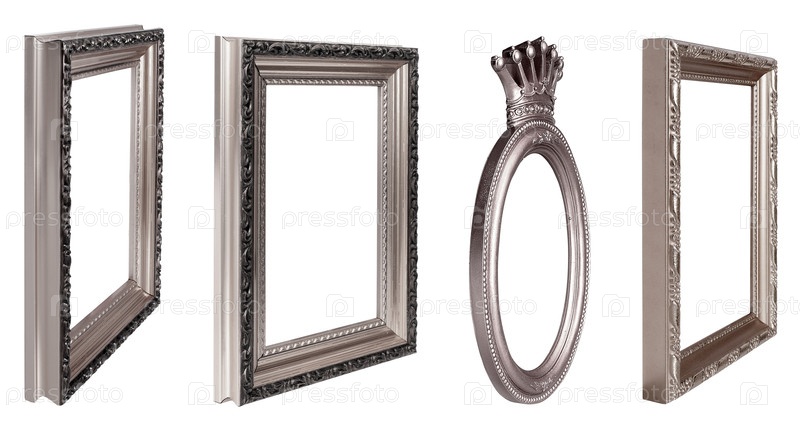 Серебряная рама для картин, зеркал или фото в перспективе изолированного на белом фоне