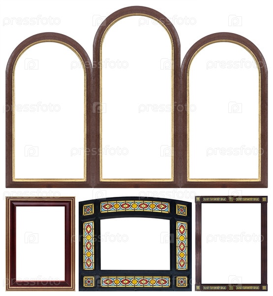 Набор деревянных рамок для картин, зеркал или фотографий изолированный на белом фоне