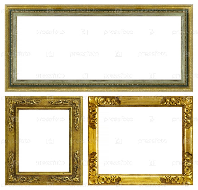 Набор золотых рамок для картин, зеркал или фотографий, изолированных на белом фоне