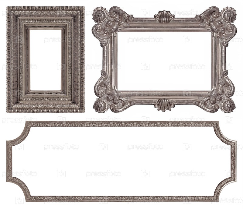 Набор серебряных рамок для картин, зеркал или фотографий изолированный на белом фоне