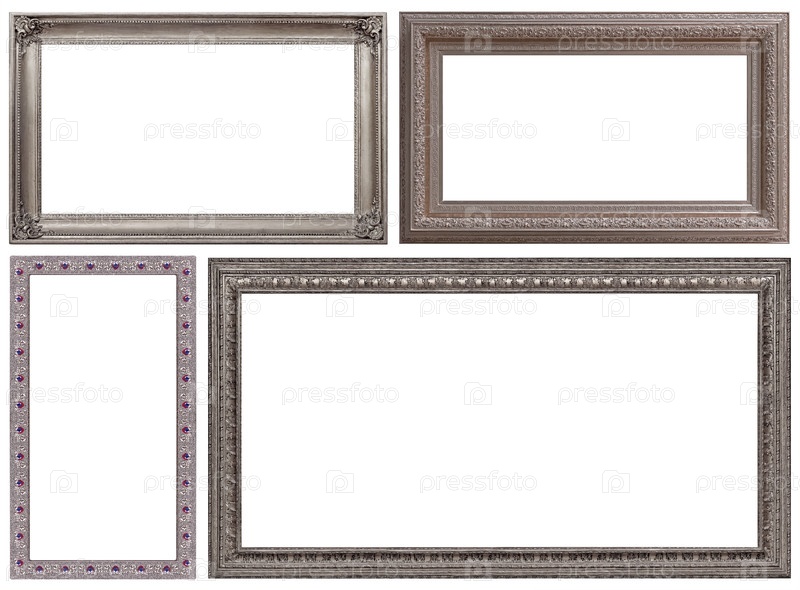 Набор серебряных рамок для картин, зеркал или фотографий изолированный на белом фоне