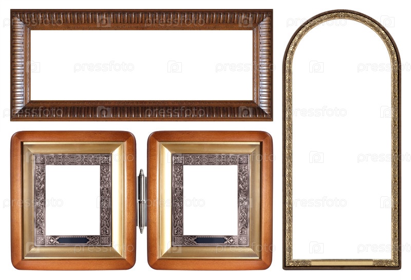 Набор деревянных рамок для картин, зеркал или фотографий изолированный на белом фоне