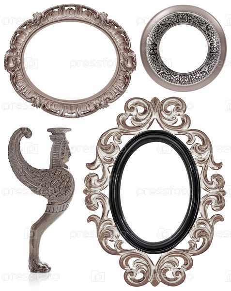 Набор серебряных рамок для картин, зеркал или фотографий изолированный на белом фоне