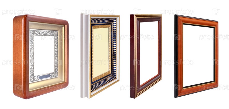 Набор деревянных рамок для картин, зеркал или фото в перспективе изолированный на белом фоне