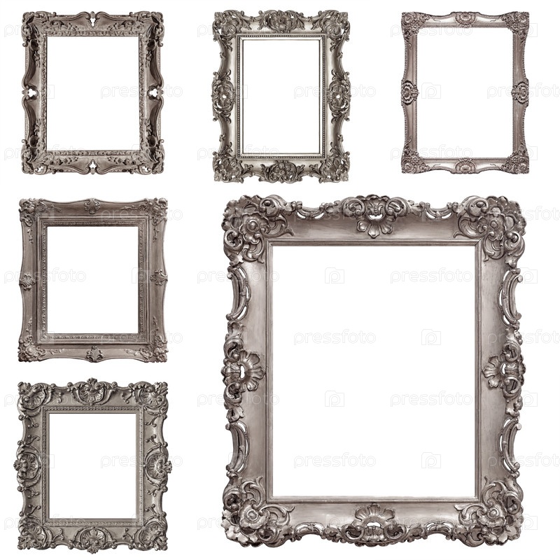 Набор серебряных рамок для картин, зеркал или фотографий изолированный на белом фоне