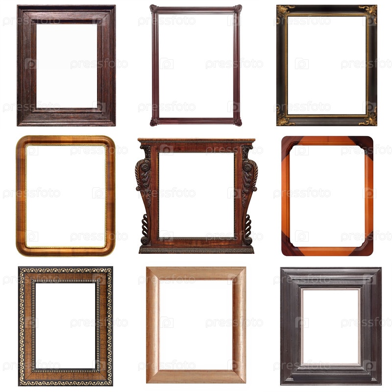 Набор деревянных рамок для картин, зеркал или фотографий изолированный на белом фоне