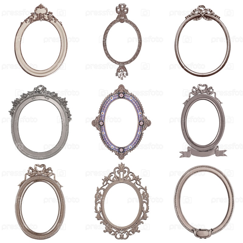 Набор серебряных рамок для картин, зеркал или фотографий изолированный на белом фоне