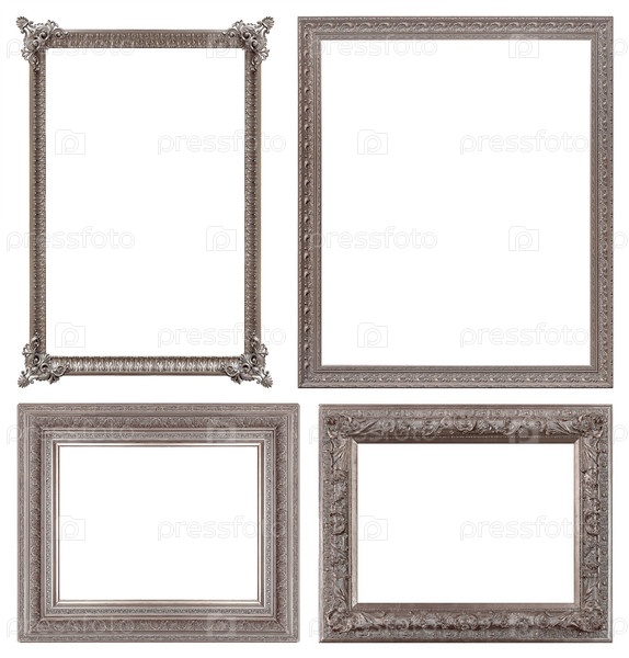 Набор серебряных рамок для картин, зеркал или фотографий изолированный на белом фоне