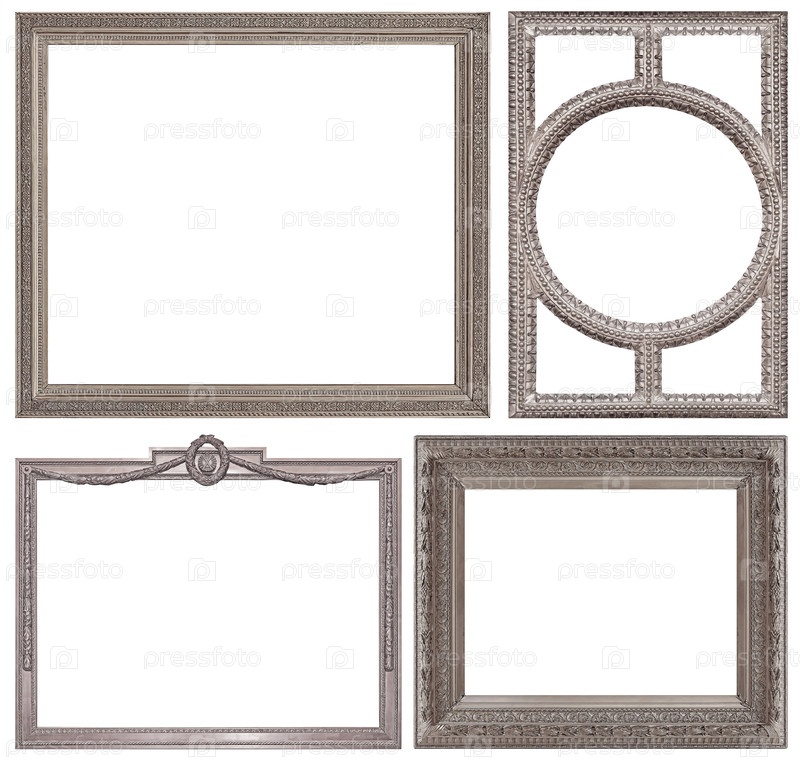 Набор серебряных рамок для картин, зеркал или фотографий изолированный на белом фоне