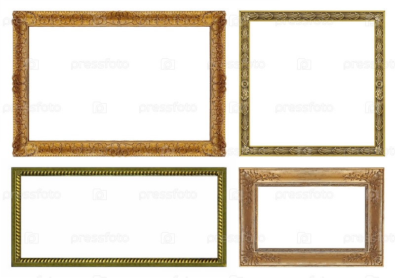 Набор золотых рамок для картин, зеркал или фотографий, изолированных на белом фоне