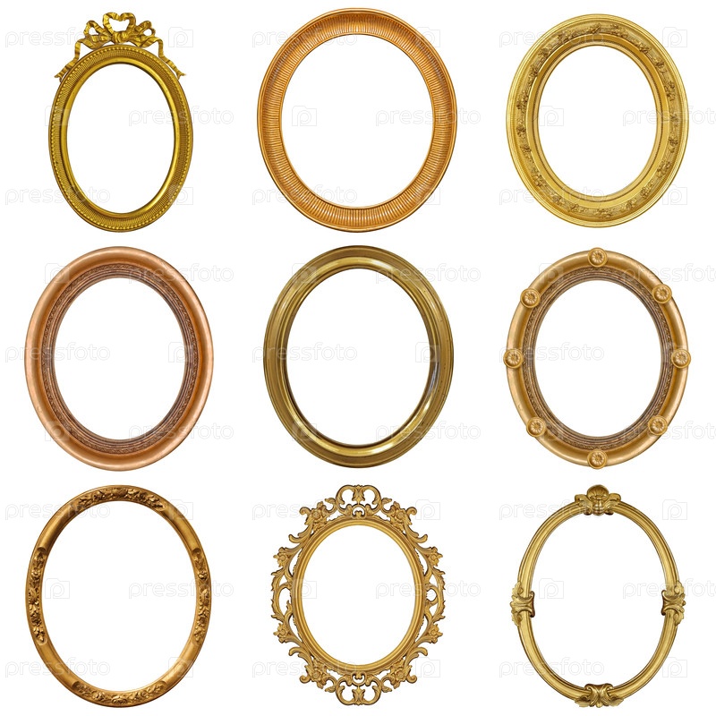 Набор золотых рамок для картин, зеркал или фотографий, изолированных на белом фоне