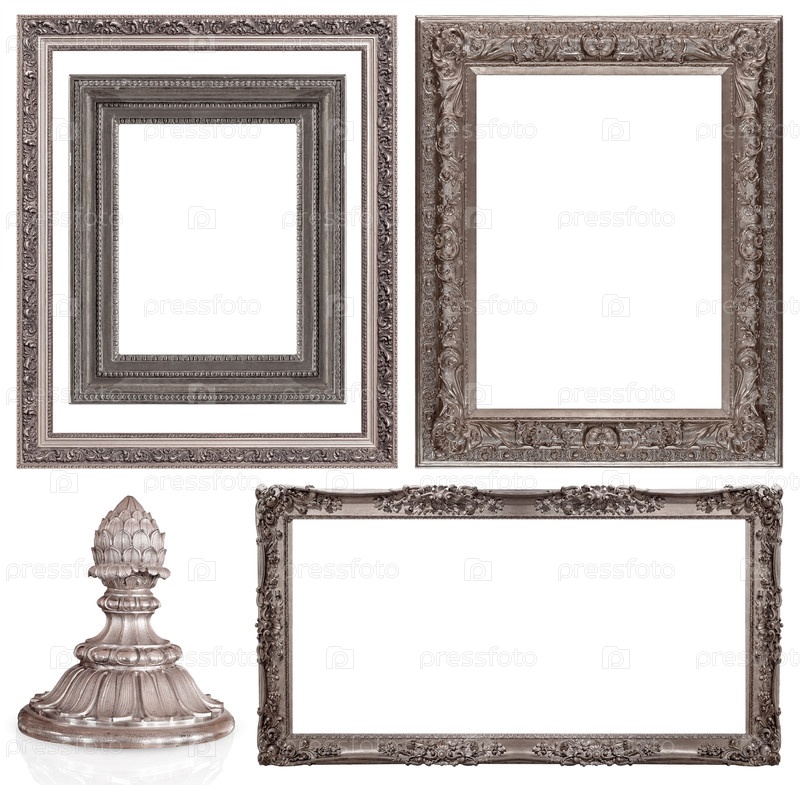 Набор серебряных рамок для картин, зеркал или фотографий изолированный на белом фоне