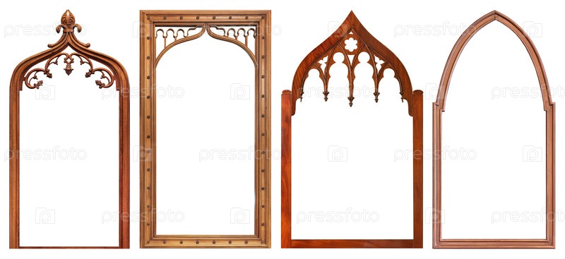 Набор готических деревянных рамок для картин, зеркал или фотографий изолированный на белом фоне