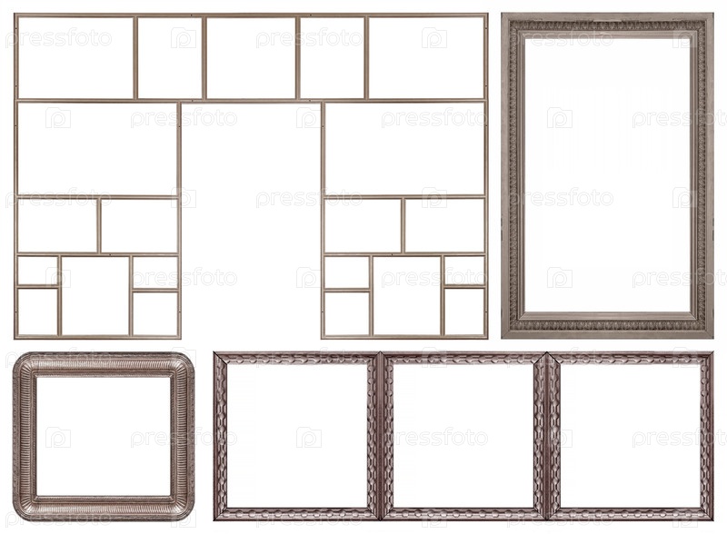 Набор серебряных рамок для картин, зеркал или фотографий изолированный на белом фоне