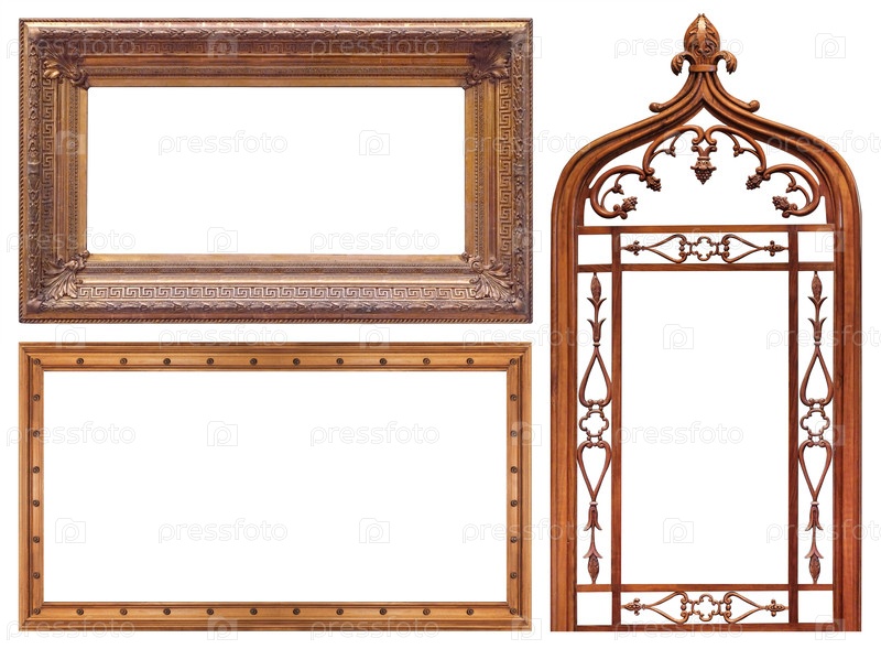 Набор деревянных рамок для картин, зеркал или фотографий изолированный на белом фоне