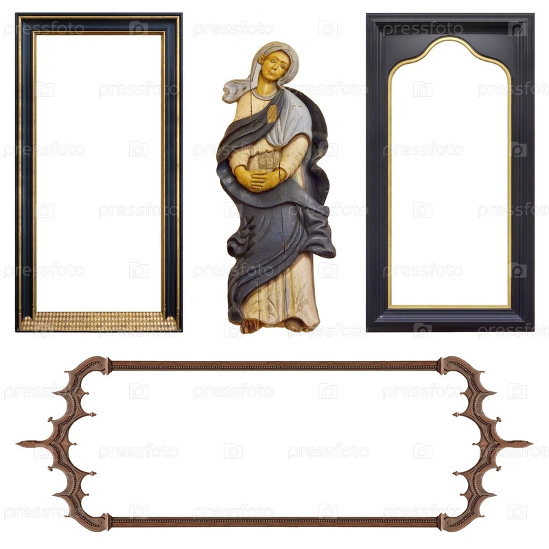 Набор деревянных рамок для картин, зеркал или фотографий изолированный на белом фоне