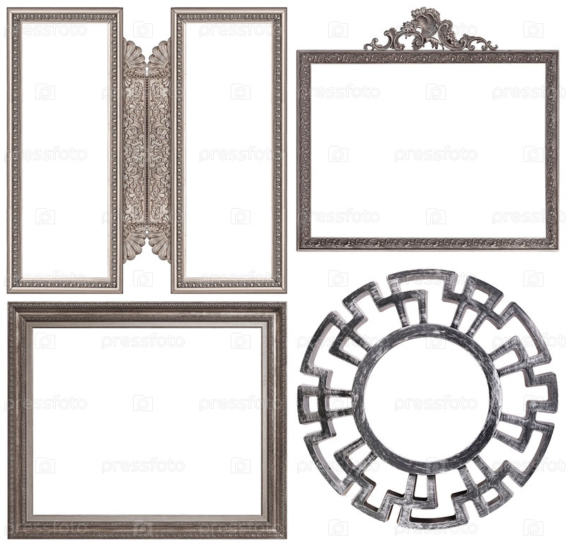 Набор серебряных рамок для картин, зеркал или фотографий изолированный на белом фоне