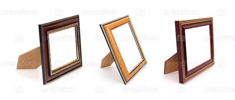 Деревянная рама для картин, зеркал или фото в перспективе изолированного на белом фоне