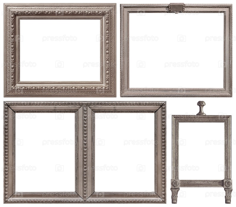 Набор серебряных рамок для картин, зеркал или фотографий изолированный на белом фоне
