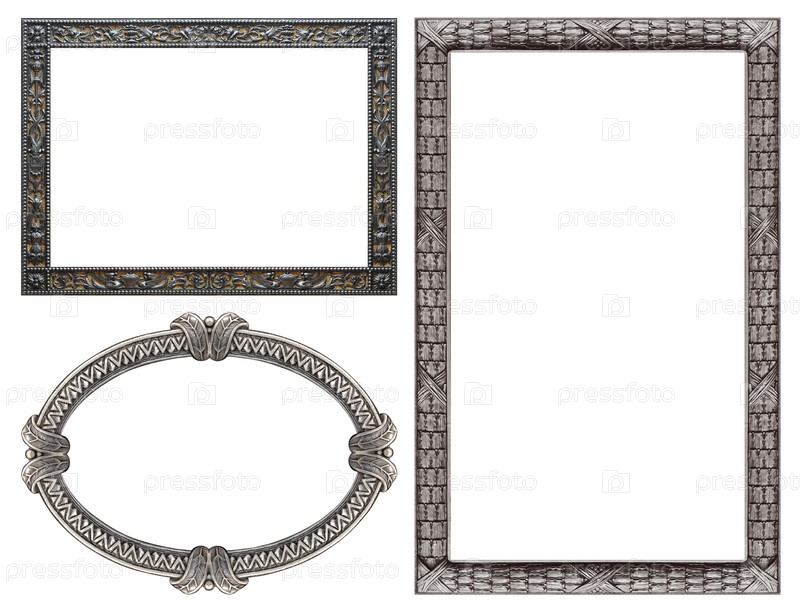 Набор серебряных рамок для картин, зеркал или фотографий изолированный на белом фоне