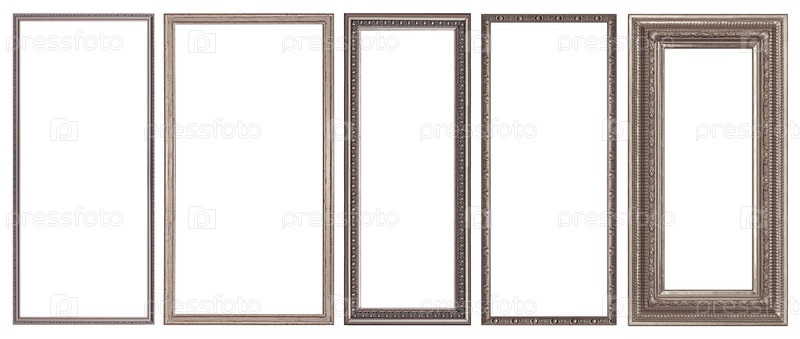 Набор панорамных серебряных рамок для картин, зеркал или фотографий, изолированных на белом фоне
