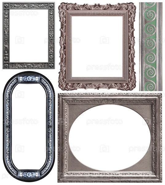Набор серебряных рамок для картин, зеркал или фотографий изолированный на белом фоне