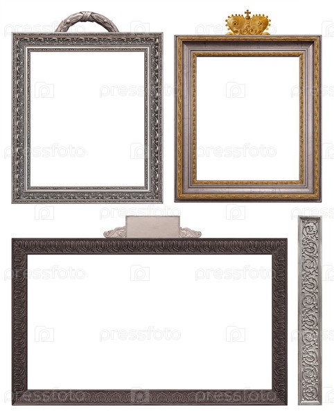 Набор серебряных рамок для картин, зеркал или фотографий изолированный на белом фоне