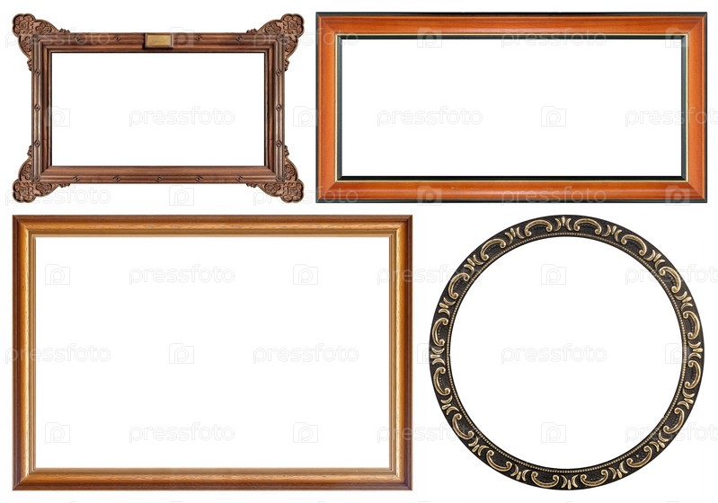 Набор деревянных рамок для картин, зеркал или фотографий изолированный на белом фоне