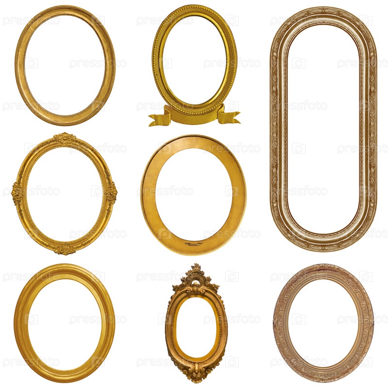 Набор золотых рамок для картин, зеркал или фотографий, изолированных на белом фоне