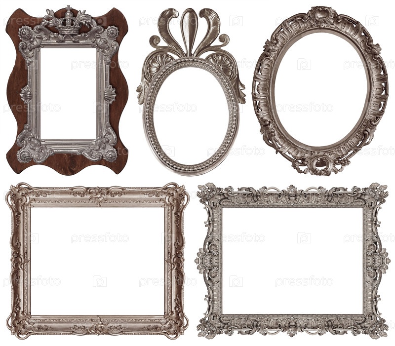 Набор серебряных рамок для картин, зеркал или фотографий изолированный на белом фоне