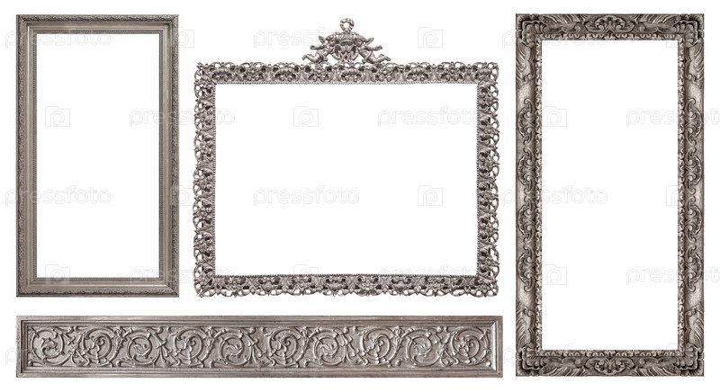 Набор серебряных рамок для картин, зеркал или фотографий изолированный на белом фоне