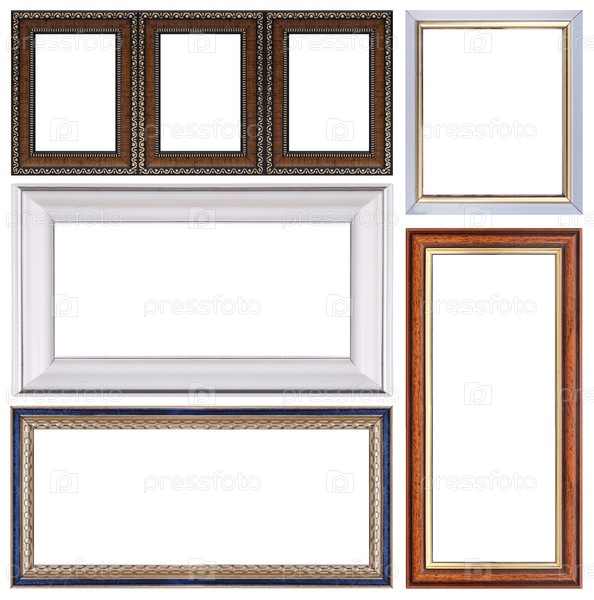 Набор деревянных рамок для картин, зеркал или фотографий изолированный на белом фоне