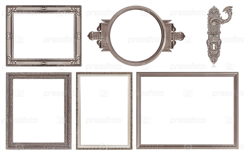 Набор серебряных рамок для картин, зеркал или фотографий изолированный на белом фоне
