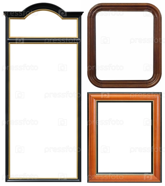Набор деревянных рамок для картин, зеркал или фотографий изолированный на белом фоне